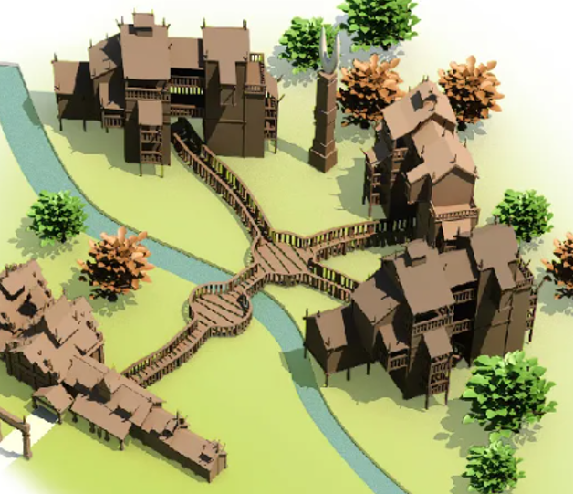 Ce projet au sein du Parc Astérix est la construction d’un hôtel de 150 chambres réparties en 14 hameaux, construits sur pilotis, constituant 3 villages : Le Village des Druides, le Village des Artistes et le Village des Potiers.