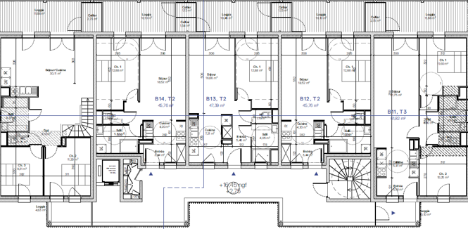 - Mode constructif étudié : planchers et coursives béton + façades en maçonnerie isolante