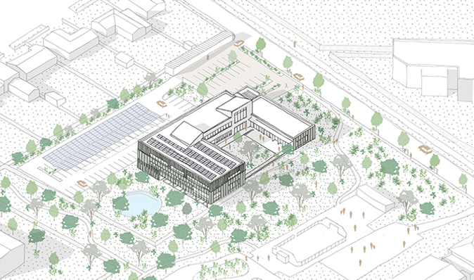 Ce projet s’inscrit dans un secteur en pleine transformation, mêlant urbanisme et préservation paysagère. Conçu pour devenir un lieu emblématique et ouvert, le bâtiment créera une nouvelle dynamique tout en offrant des espaces fonctionnels, conviviaux et respectueux de l’environnement.