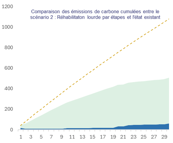 Les bouquets ainsi évalués, plusieurs trajectoires de décarbonation sont construites visant à respecter l’exigence d’éradication des passoires de la loi Climat & Résilience ainsi que l’alignement à la stratégie nationale bas-carbone (SNBC). Réalisées à l’échelle du groupe Procivis Logement Social (9 bailleurs), ces trajectoires sont ensuite déclinées à l’échelle individuelle pour chaque entité.