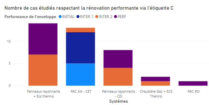 Pour 6 typologies, différents scénarios de travaux de rénovation sur l’enveloppe et les systèmes ont été étudiés. Une évaluation économique a également été intégrée pour déterminer le positionnement technico économique des solutions électriques. Au total, près de 400 simulations ont été menées avec l’outil DPEWin.