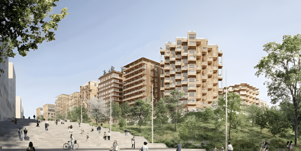 - Mode constructif : R+10 : ITE + Béton bas carbone // R+5 : MOB + Poteau-Poutre Bois.