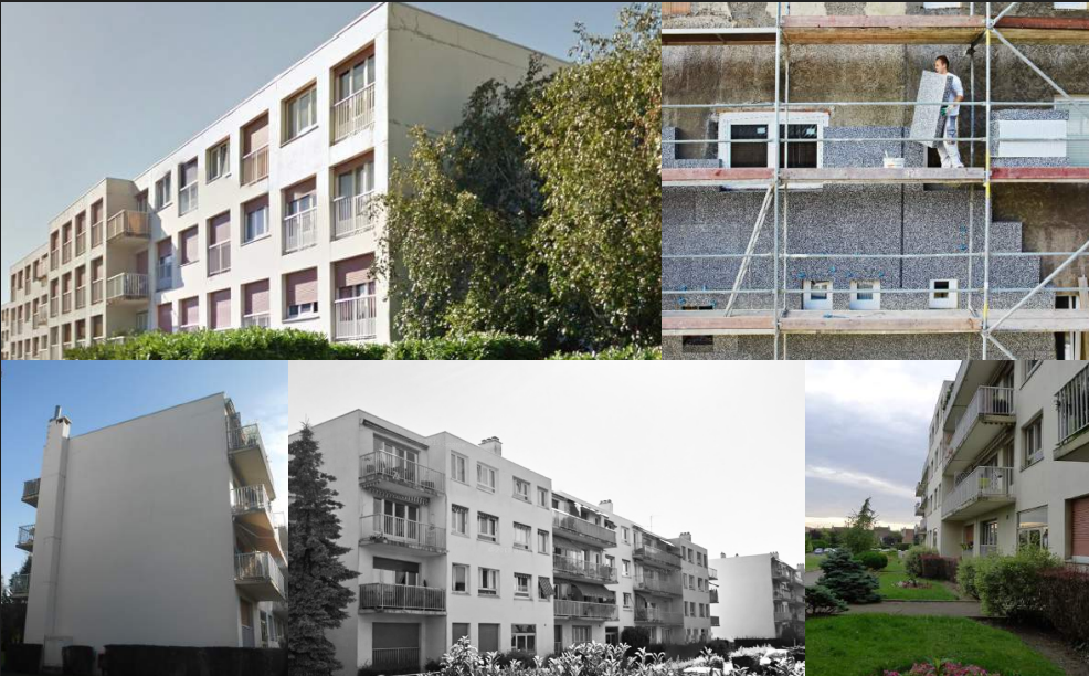 - Isolation complète du bâti (isolation extérieure avec création balcons, toiture, menuiseries, création sas…)
